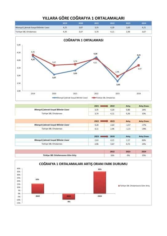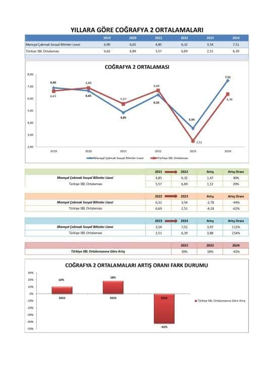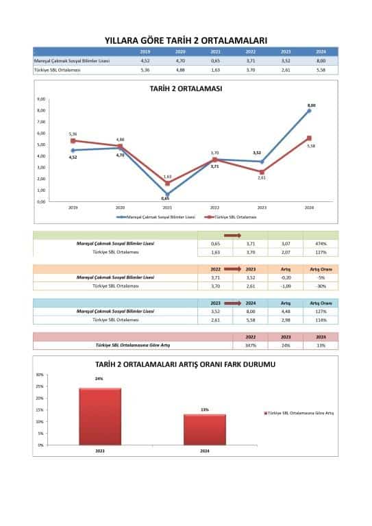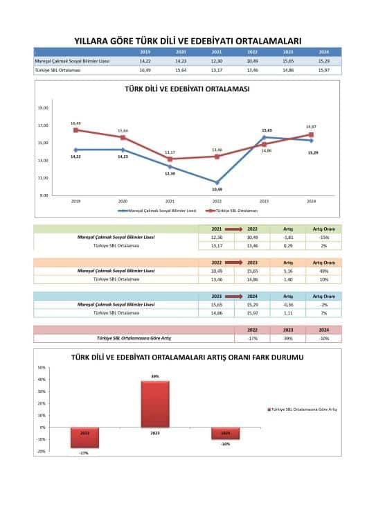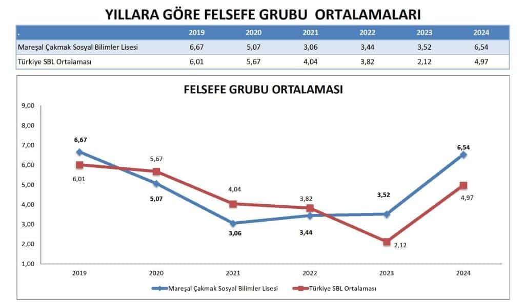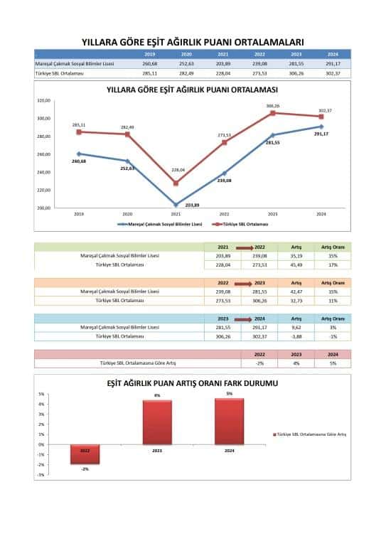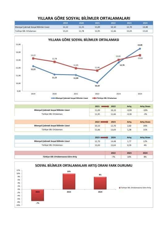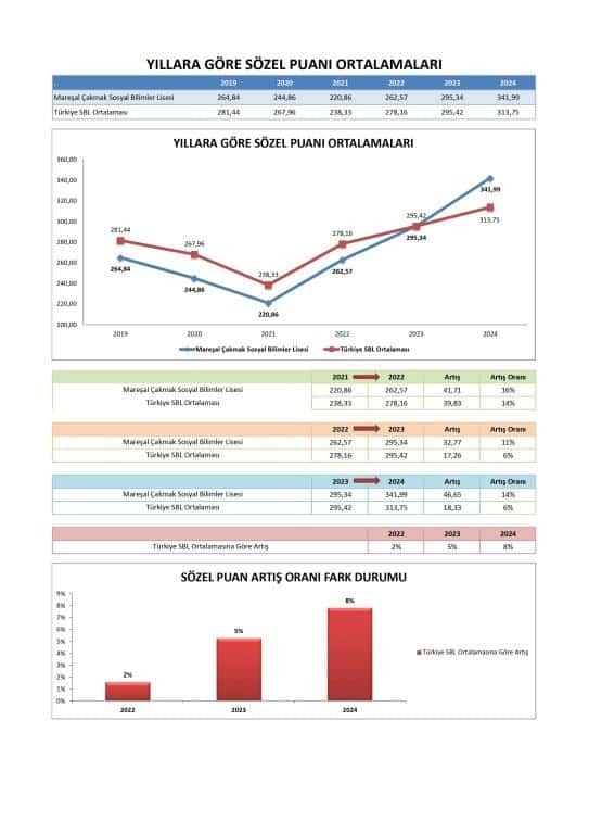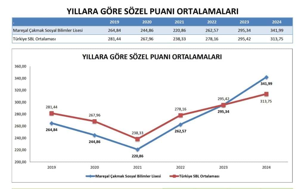 Özellikle 2024'te, okulun ortalama Sözel puanı (341.992) Türkiye SBL Ortalaması'nı (313.745) geçerek bu alanda güçlü bir performans sergilemiştir. Okul, Sözel puanlarında 2023'ten 2024'e önemli bir sıçrama kaydetmiştir.