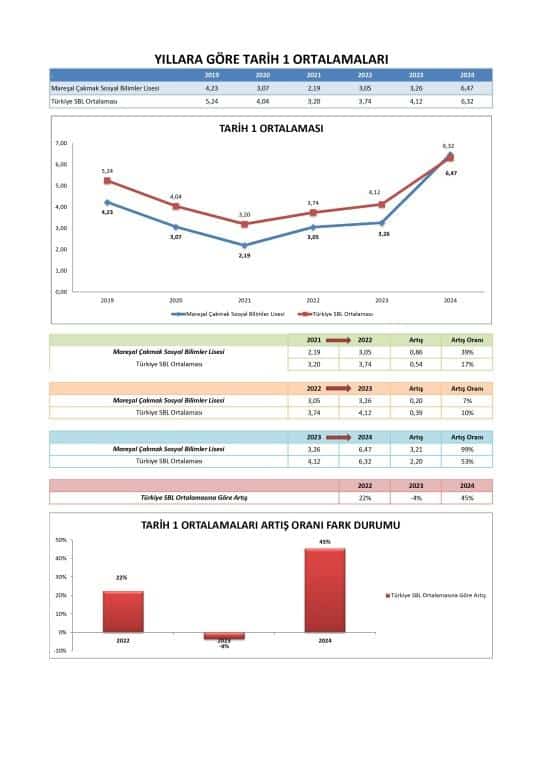 "Gemini" olarak Mareşal Çakmak Sosyal Bilimler Lisesi'nin 2019'dan 2024'e kadar Üniversite Sınavı'ndaki (YKS) başarı durumunu, Türkiye genelindeki Sosyal Bilimler Liseleri (SBL) ortalamasıyla karşılaştıran bir ölçme ve değerlendirme uzmanı olarak değerlendirmem aşağıdadır: