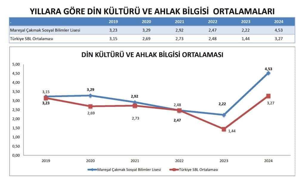 Sözel derslerde olağanüstü performans: Okul, 2024'te Sözel puanları, Türkçe, Tarih 1, Tarih 2, Coğrafya 1, Coğrafya 2, Felsefe Grubu ve Din Kültürü ve Ahlak Bilgisi'nde ulusal SBL ortalamasını geride bırakarak, temel sosyal bilimler ve sözel odaklı alanlarda güçlü uzmanlaşma ve başarıyı vurgulamıştır.